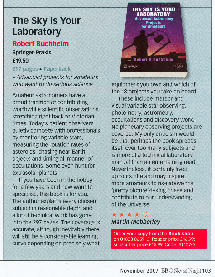 Here's a description of an undergraduate seminar that is using The Sky is Your Laboratory as a textbook.